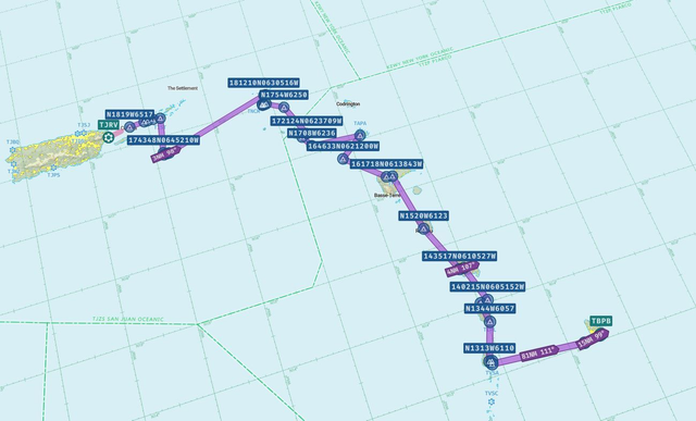 Die Karibik-Tour der Superlative für die Boeing 737-800. Start ist in Puerto Rico und dann folgen all die Feriendestinationen wo man unbedingt mal hin müsste. Erste mögliche Landung ist in St. Thomas RW 10 (Virgin Islands), dann zur Cruz Bay, gefolgt von einer weiteren Landung auf St. Croix TISX RW 10. Weiterflug nach Anguilla mit oder ohne Landung RW 10, nach Guadeloupe (St.Maarten), wo eine Landung auf dem spektakulären Princess Juliana (RW10) Pflicht ist. Weiter geht’s über St. Barthelemy nach St. Kitts mit einer Landung auf RW 25. Überflug Charlestown nach Antigua zu Montserrat mit einer Landung in Guadeloupe, auf TFFR RW 12. Weiterflug nach Roseau zu Martinique mit Landung auf RW 10. Von da nach St. Lucia mit Landung auf TLPC RW 27, nach St. Vincent (Kingstown) RW22 zur finalen Landung in Barbados auf TBPB RW 60.