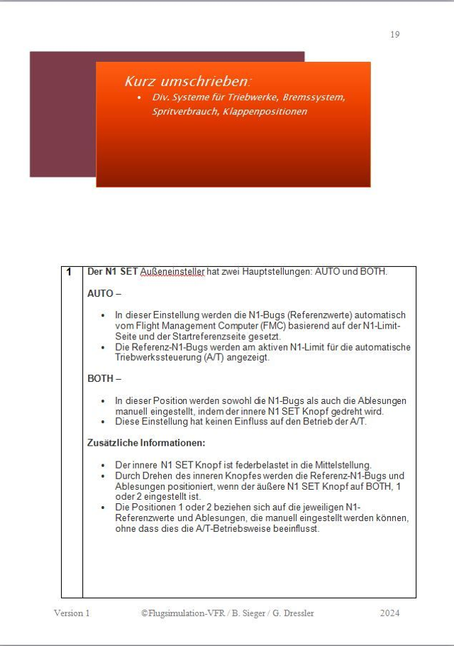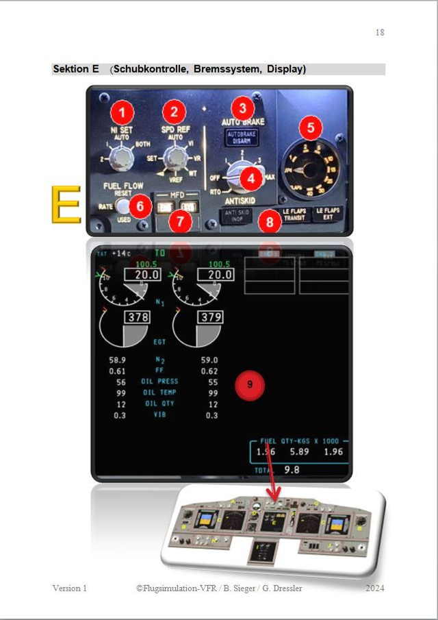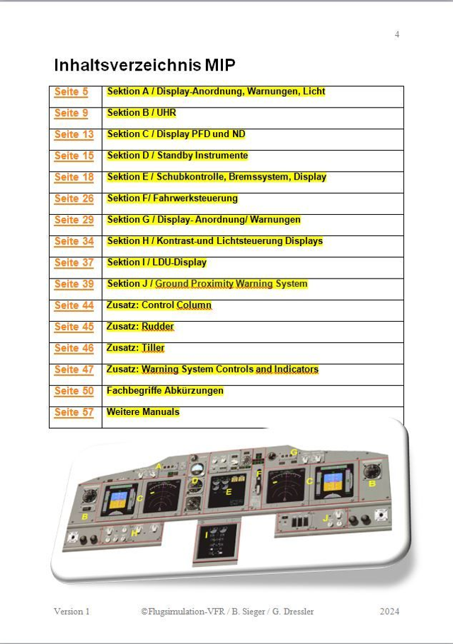 In dieser 49 A4 Seiten pdf.Datei sind sämtliche Schalter, Knöpfe, und Hebel in ihrer Funktionalität beschrieben. Zusätzlich sind viele ergänzende Infos enthalten. In diesem Manual (in elektronischer Form), kann man bequem zu den Kapiteln springen, ohne lange scrollen zu müssen und es ist somit auch auf einem Tablet-PC im Cockpit nutzbar. Ausgedruckt ist es ein tolles Nachschlagewerk. Steuerhorn, Rudder-Pedals und Tiller darin.