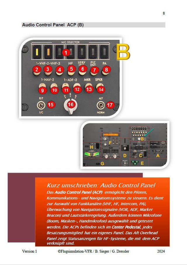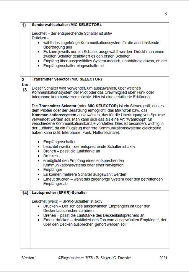 In dieser 103 A4 Seiten pdf.Datei sind sämtliche Schalter, Knöpfe, Anzeigen, Warnlichter etc. in ihrer Funktionalität beschrieben. Zusätzlich sind viele ergänzende Infos enthalten. In diesem Manual (in elektronischer Form), kann man bequem zu den Kapiteln springen, ohne lange scrollen zu müssen und es ist somit auch auf einem Tablet-PC im Cockpit nutzbar. Ausgedruckt ist es ein tolles Nachschlagewerk.