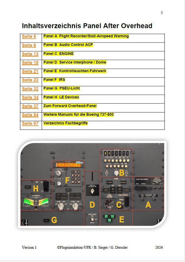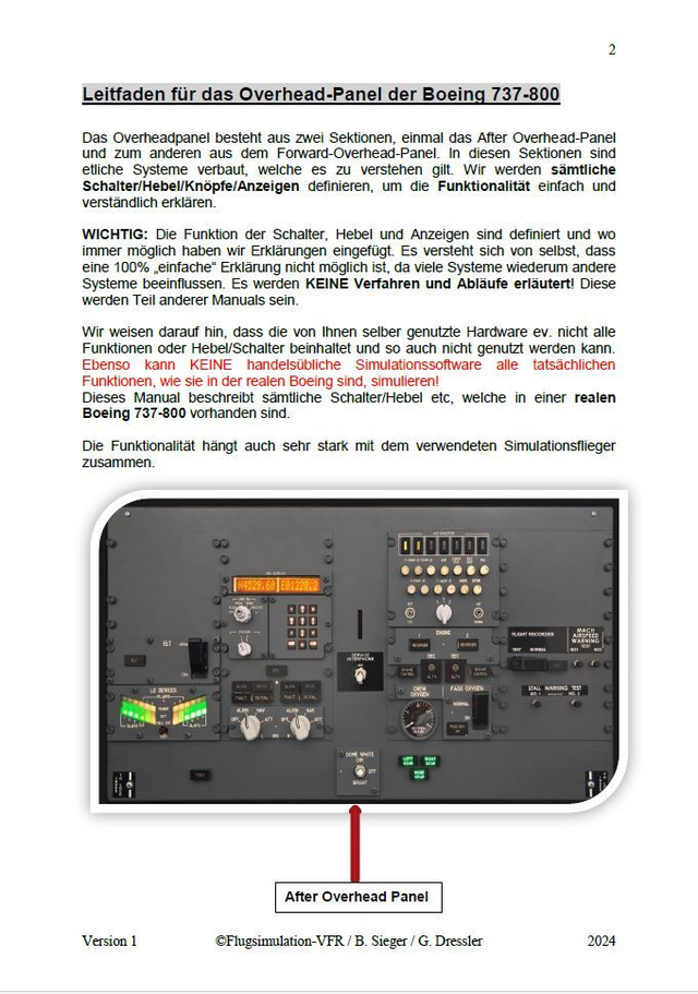 Komplettes Manual für das After Overhead und Forward Overhead der Boeing 737-800.